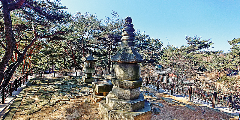 양주 회암사와 지공 나옹 무학 삼화상 부도전. 회암사는 불타고 19세기 말 지금 자리에 새로 부도를 모셨다.