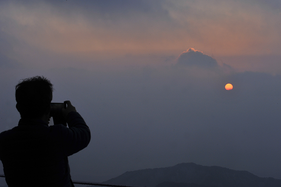 7시39분에 떠올라야 할 해가 짙은 구름 때문에 10분 늦게 모습을 드러낸다. 운해 위로 아름답게 떠오르는 해를 기대했는데….