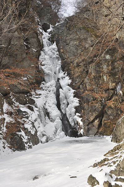 처녀를 구한 폭포가 그 유명한 희방폭포다. 28m 높이의 폭포는 한파로도 다 얼리지 못한 모습이다. 얼음 사이로 힘차게 물줄기가 떨어지고 있다.