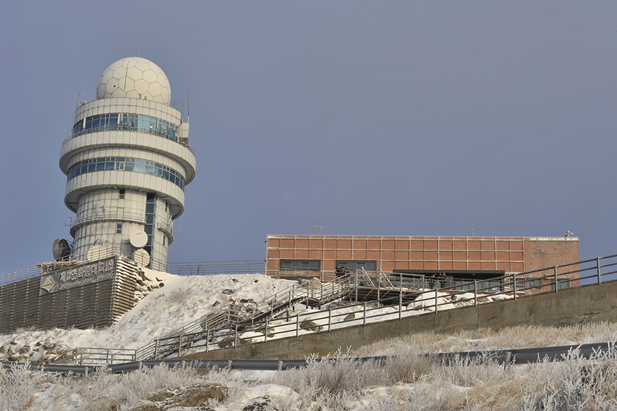 아름다운 겨울 산행을 즐기려면 안전을 위해 아이젠, 비상식량, 방한용품 등을 반드시 챙겨야 한다. 제2연화봉에서 바라본 연화봉 천문대(가운데). 왼쪽으로 소백산 최고봉인 비로봉이 보인다.