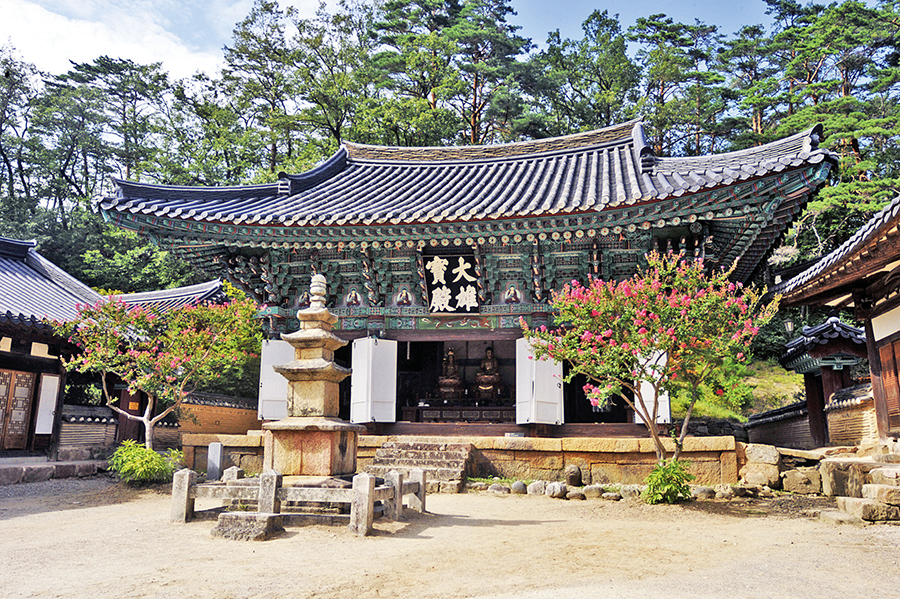 금강송 숲이 있는 울진 금강송면에는 소나무같이 대중이 모여 있는 천년고찰 불영사가 있다. 불영사는 제11교구본사 불국사의 말사로 신라진덕여왕 5년(651)에 의상스님이 첫 번째로 창건한 유서깊은 사찰이기도 하다. 당나라에서 귀국한 의상스님이 자신이 설한 <화엄경> 설법을듣고 아홉 마리의 용으로 변해 승천한 연못에 불영사를 창건했다고 전해진다.
