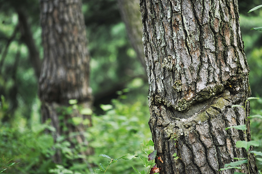 숲에 있는 큰 나무들에 ‘V’ 형태의 큰 흉터들을 쉽게 발견할 수 있는데 일제가 패망하기 직전에 부족한 연료로 사용하기 위해 송진을 채취하려고 주민들을 동원해서 낸 상처라고 한다. 마치 웃는 모습으로 보이는 흉터가 더 안타깝게 다가온다.