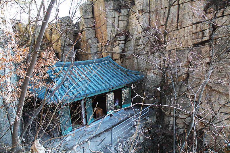 밖에서 바라보면 사인암 바로 옆이 청련암이다. 남조천에 놓인 출렁다리를 건너면 사찰로 바로 들어간다. 안으로 들어서니 아까 본 풍경과 달리 사인암은 청련암 경내에 자리하고 있다.