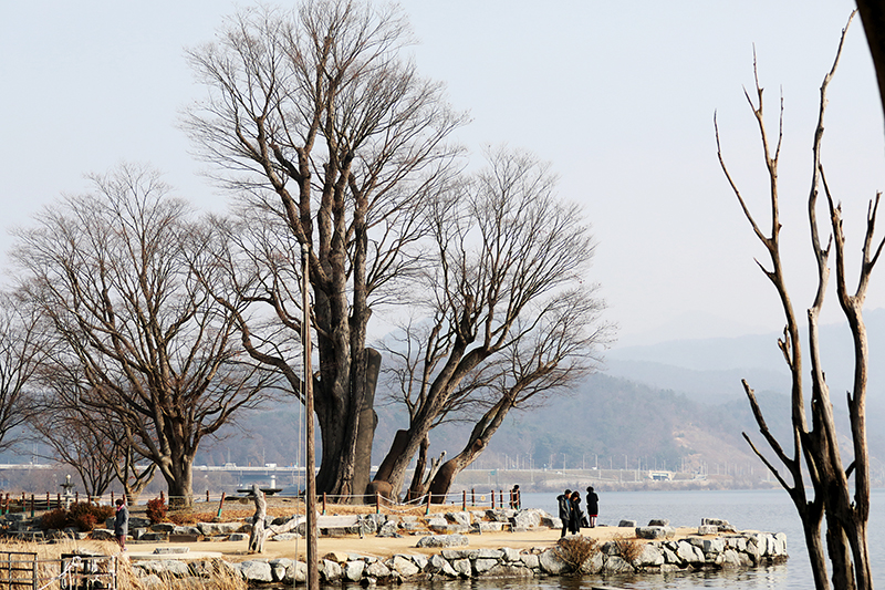 많은 모습이 변했지만 400여 년 동안 자리를 지키고 있는 느티나무가 있다. 세 그루의 느티나무가 보는 방향에 따라 한 그루처럼 보이기도 한다. 초겨울 세 그루의 서로 뒤엉키지 않는 나뭇가지에서 수염자락이 연상된다. 영락없는 멋들어진 두물머리 터줏대감 모습이다.