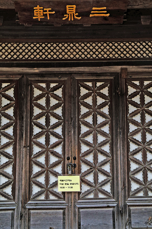 차를 마시며 양수리를 내려 볼 수 있는 수종사 경내의 삼정헌. 예불시간에는 잠시 다실 문을 닫는다.