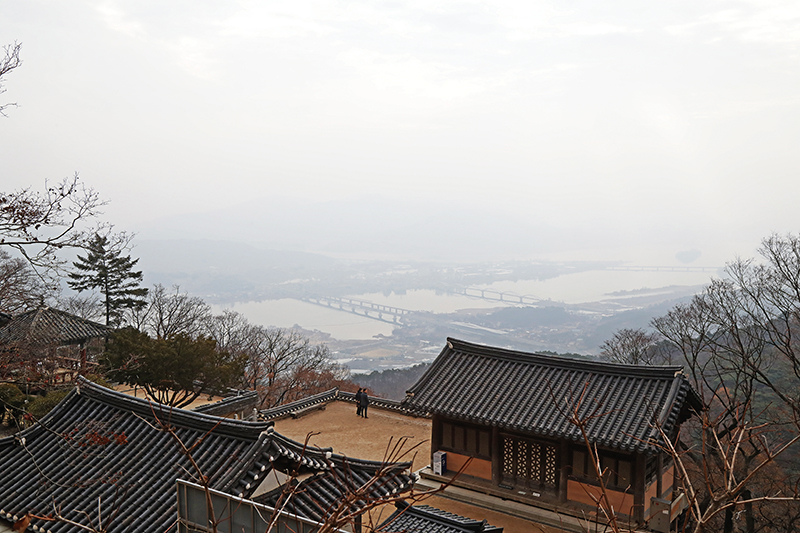 주차장에서 일주문과 불이문을 지나 완만한 오르막을 걸으면 오른쪽으로 양수리의 풍경이 보이기 시작한다. 양수리 일대가 한눈에 담기는 자리는 산신각 앞이 최고다. 전각 처마 위로 살포시 펼쳐지는 양수리 풍경이 펼쳐진다. 산신각을 내려오면 누구에게나 열려 있는 ‘삼정헌’이라는 스스로 차를 내려 마실 수 있는 무료찻집이 있다. 양수리 쪽으로 큰 창을 내어 차의 향기를 맡고 한 모금 넘기며 창밖을 바라보면 고요한 산사에 풍경소리가 들려온다. 귀 뿐 아니라 눈, 코, 입 모두가 저절로 즐거워지는 시간을 갖게 된다.
