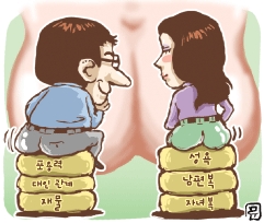 텔레비전 드라마에서 젊은 여성이 예쁜 걸음걸이를 연습하기 위해서 머리에 책을 올려놓고 자연스럽게 걷는 장면을 본 적이 있다. 어깨를 흔들면 책이 떨어지므로 자연스럽게 엉덩이를 흔들면서 걷는 연습을 하는 것이다. 남자는 단지 여성의 큰 엉덩이에서만 매력을 느끼는 것은 아니다.