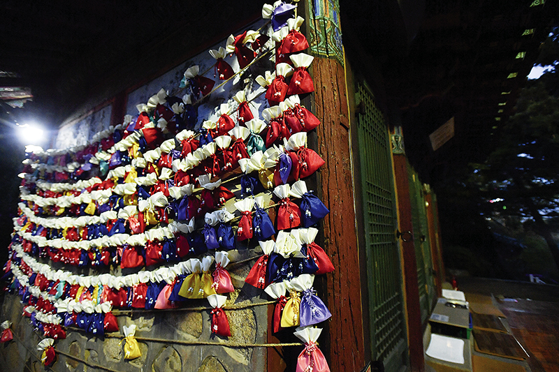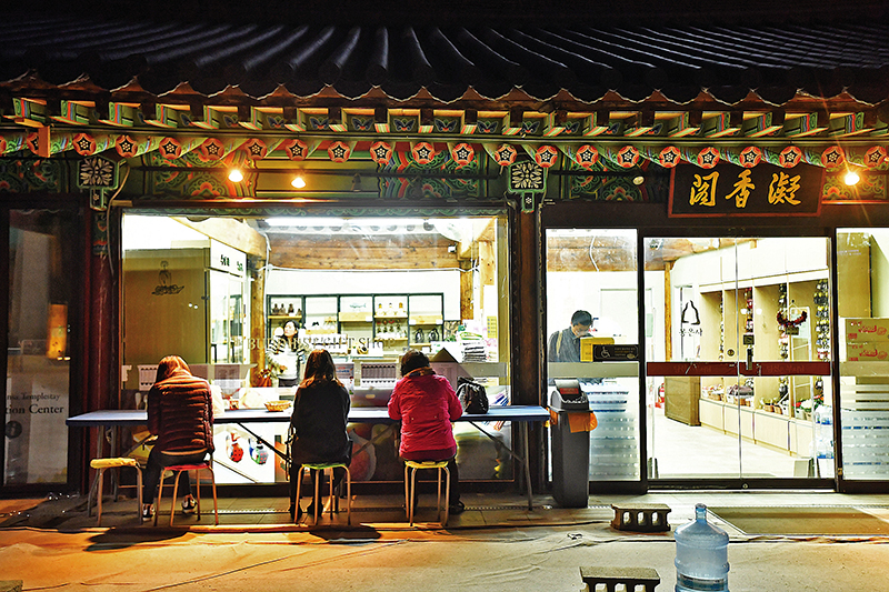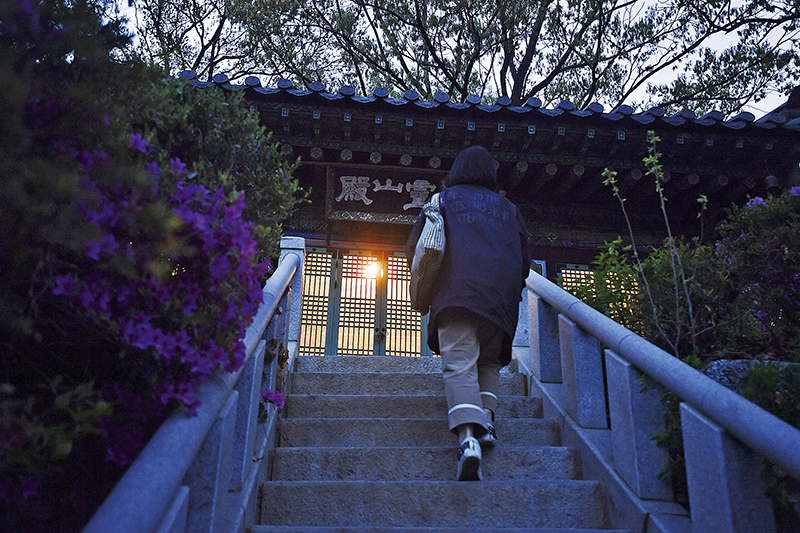 지난 16일 오후5시30분 봉은사. 아침부터 초하루법회를 봉행하기 위해 북적였을 도량이 한산하다고 느낀 것은 순간이다. 서쪽으로 넘어간 해가 건물유리창으로 비추는 시각에도 사찰에 들어서는 사람들이 잔잔한 물결처럼 끊이지 않는다. 관광을 나선 외국인들도 있다. 사찰 초입 불교용품을 파는 응향각으로 가는 불자들도 있다. 부처님 전에 올릴 초와 쌀을 사서 이름을 쓰고 정성껏 서원을 적는 모습에서 간절함을 엿볼 수 있다.
