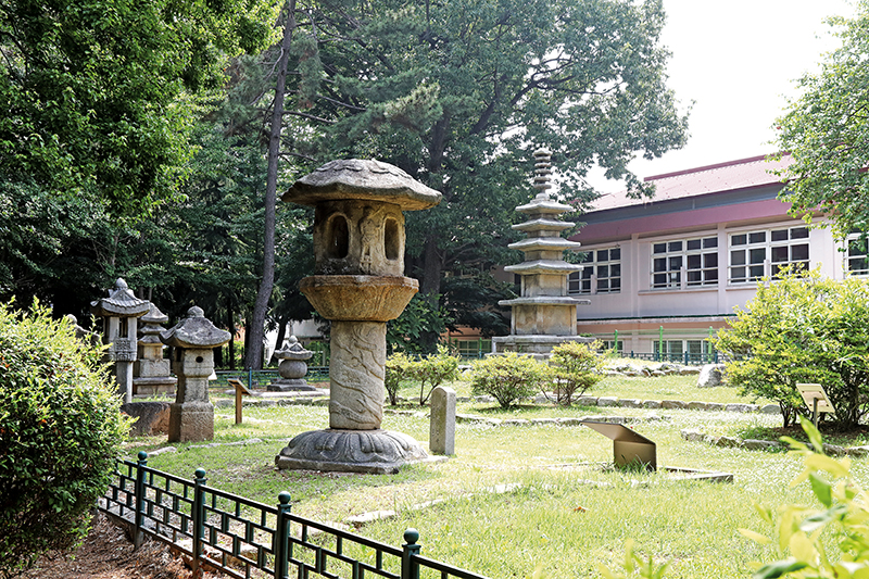 이어 도착한 곳은 차량으로 15분 거리의 발산초등학교다. 학교 뒤편으로 주차장과 화장실이 따로 마련되어있다. 이유는 군산 발산리 오층석탑(보물 제276호)와 군산 발산리 석등(보물 제234호)를 비롯한 여러 성보들이 학교 뒤편에 자리하고 있기 때문이다. 석탑과 석등은 원래 완주 봉림사터에 있었으나 일제강점기 일본인 농장주에 의해 본인의 농장 정원으로 옮겨 놓은 것으로 발산 초등학교는 이후에 이곳에 자리 잡았다.