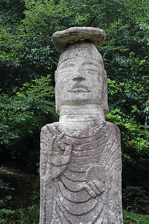이어서 찾은 곳은 기솔리 석불입상(경기도 유형문화재 제36호). 기솔리 쌍미륵으로 불린다. 여기도 크기가 5m에 이르는 거대 미륵 2구가 나란히 서 있다. 커다란 돌기둥에 부처님의 전체적인 모습을 간략하게 조각했다. 왼쪽은 상대적으로 곱고 부드러움이 전해진다. 오른쪽에 자리한 미륵은 후고구려의 궁예와 연관 지어져 이야기가 전해진다. 안성이면 한강에서도 남쪽인데 여기에 무슨 후고구려 이야기가? 시간은 신라 말로 거슬려 올라간다. 쇠락한 신라에서 독자세력을 형성했던 기훤의 본거지가 안성인데, 궁예는 한때 기훤에게 의탁했다 훗날 배신하고 후고구려를 세우니 안성과 궁예사이에는 연결고리가 분명 존재한다.