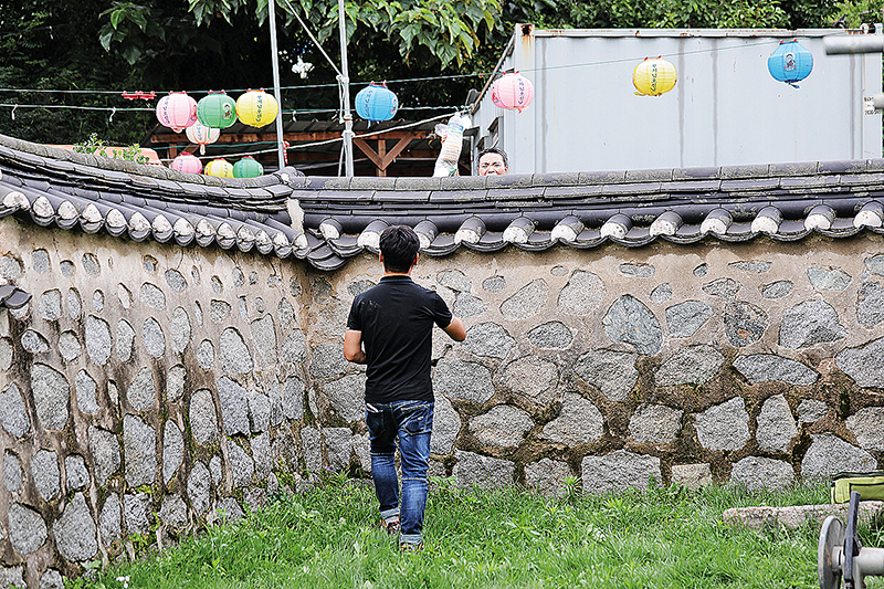 안타깝게도 미륵 주변은 보수공사를 위한 임시 가설물인 비계 설치가 한창이다. 하지만 미륵의 상태는 별문제가 없어 보였다. 하늘은 언제 그랬냐는 듯 구름 한 점 없다. 고개를 한참 갸웃 거리고 있는데 ‘어떻게 오셨냐고’ 말을 건네는 현장소장을 만날 수 있었다. 누각에 비가 새서 지붕을 열어 그 안을 살펴 볼 것 이라고 했다. 이때 동네 할머니가 담장 너머에서 무언가를 전해주려고 작업자들을 부른다. 살얼음이 얼려 있는 큰 생수병에 탄 커피다. 현장소장에 따르면 동네 어른들이 미륵당에 관심이 참 많다고 한다. 하루도 거르지 않고 기도를 올리는 어르신도 있다고 한다. 여기 미륵당은 마을의 터줏대감이자 마을사람들의 신앙의 공간인 것이다. 미륵당을 향한 주민들의 애정 때문인지 지금도 이 지역은 ‘미륵당마을’ 이라 불리고 있다.