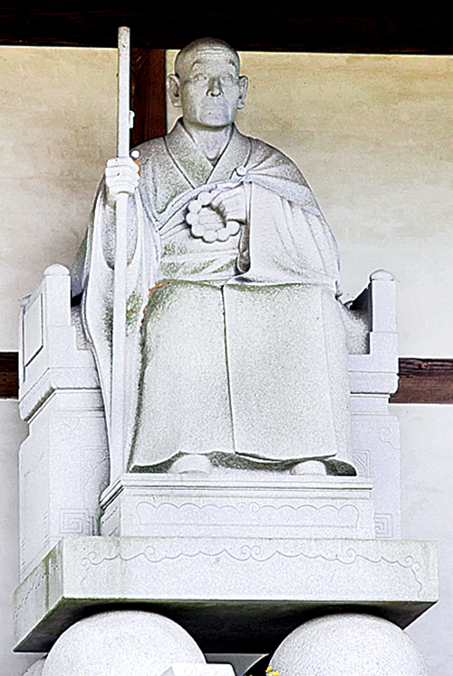 애초 목적지로 가려했던 이유는 섬의 색다른 풍광 때문이 아닌가? 배를 타지 못했을 뿐이지 지금 눈앞에 펼쳐지는 사찰의 첫 모습은 한 폭의 그림 같은 매력이 넘쳐난다. 이곳 또한 글과 사진을 싣기에 차고 넘치는 요소들을 두루 갖추고 있다. 최선이 아닌 차선의 선택이었지만 한 마음 접으니, 새로운 기대와 설렘이 찾아든다. 일반적으로 석탑이 자리하는 법당 앞은 바둑판 모양으로 네모난 돌들이 촘촘히 사찰의 중심영역을 채우고 있다. 법당의 이름은 ‘부처님의 밝은 진리를 세상에 널리 비춘다’는 의미의 보광전(경상남도 유형문화재 제249호)이다. 정면에서 바라 볼 때는 단출한 규모의 평범한 법당인데 밖에서 옆면의 윗부분을 바라보면 지붕의 나무부재들이 곱게 단청을 하고 돌출돼 있다. 무엇보다 그 형태와 채색이 빼어나다. 안내판에는 이를 다포계 맞배집은 앞뒤만 장식하고 풍판을 길게 설치하는데, 용화사 보광전은 맞배집이면서도 측면에 장식을 두어 맞배집의 경제적 효율성과 팔작집의 장식성을 동시에 추구했다고 설명하고 있다. 그리고 효봉스님의 사리탑과 동상이 있다.