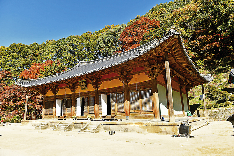 지난 6월 바레인에서 반가운 소식이 날라 왔다. 영축산 통도사, 봉황산 부석사, 속리산 법주사, 두륜산 대흥사, 태화산 마곡사, 천등산 봉정사, 조계산 선암사 등 7곳의 사찰이 ‘산사, 한국의 산지승원’ 유네스코 세계유산으로 등재됐다. 당시 제42차 세계유산위원회 회의 모습은 유투브로 생중계되었다. 안건이 상정되고 심사위원들이 보는 화면에 부석사 사진이 나왔다. 단풍으로 물든 부석사는 한국의 산지승원을 대표하는 듯 했다. 지난 10월24일 청량리역에서 아침 일찍 무궁화호를 타고 부석사를 향했다. 고속철에서는 느끼지 못하는 흔들거림을 즐기다 보니 잠이 솔솔 온다. 문득 눈을 뜨니 창밖에 안개가 가득 끼여 있다. 충주댐 건설로 거대한 호수가 생긴 단양을 지나고 있었다. 꿈속 같은 창밖 풍경을 바라보다 소백산을 지나 풍기로 나오니 안개는 모두 사라지고 따가운 햇살이 비춘다. 희방사역에 정차한다. 등산배낭을 맨 한명만 조용히 역으로 빠져나간다. 홀로 산행을 떠나는 사람이 부럽게 느껴진다.