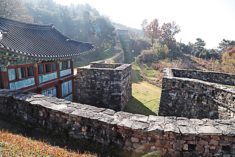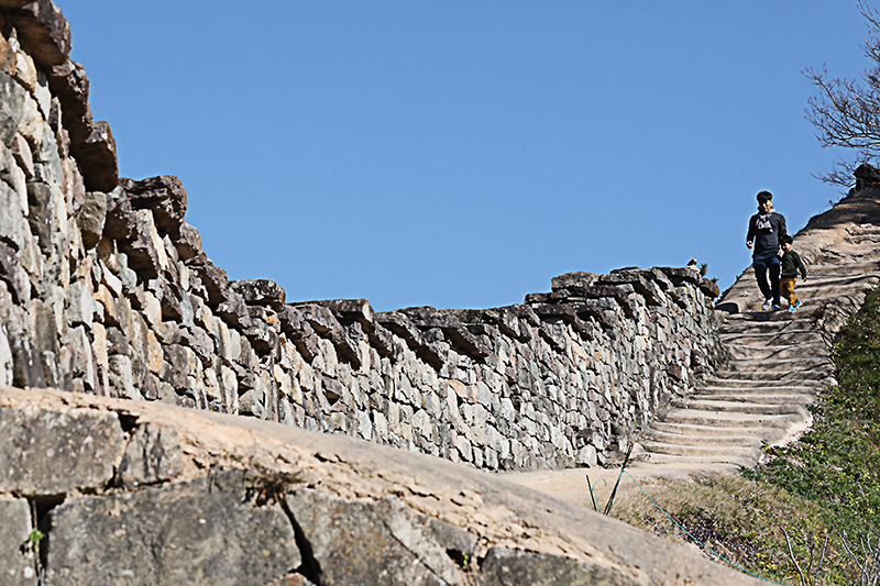 이제 성 내부를 둘러볼 차례. 이번 기행의 단초가 된 맹종죽림을 향한다. ‘맹종죽’은 중국이 원산지인 관상용 대나무이다. 정문의 역할을 하는 북문에서 성곽 길을 따라 서문에 도착하면 대숲이 보이기 시작한다. 소나무들은 폭 넓게 자리하고 있지만 대나무는 서쪽 일부구간에 한정되어 조밀하게 자리하고 있다.