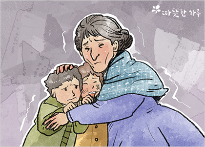 엄마는 아이들을 끌어안고 숨어 있었지만,