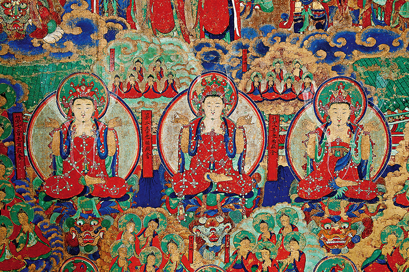 이러한 이상적 세계는 대방광불화엄경(大方廣佛華嚴經), 줄여 ‘화엄경’을 통해 설명된다. 대승경전의 왕 혹은 경전 중의 경전으로 불리는 화엄경은 60 화엄경, 80 화엄경, 40 화엄경, 3종류가 존재한다. 이 중에서 80 화엄경은 일명 ‘주본(周本)’으로, ‘대화엄회(大華嚴會)’를 전체 39품의 칠처구회(七處九會)로 구성, 설명하고 있다.