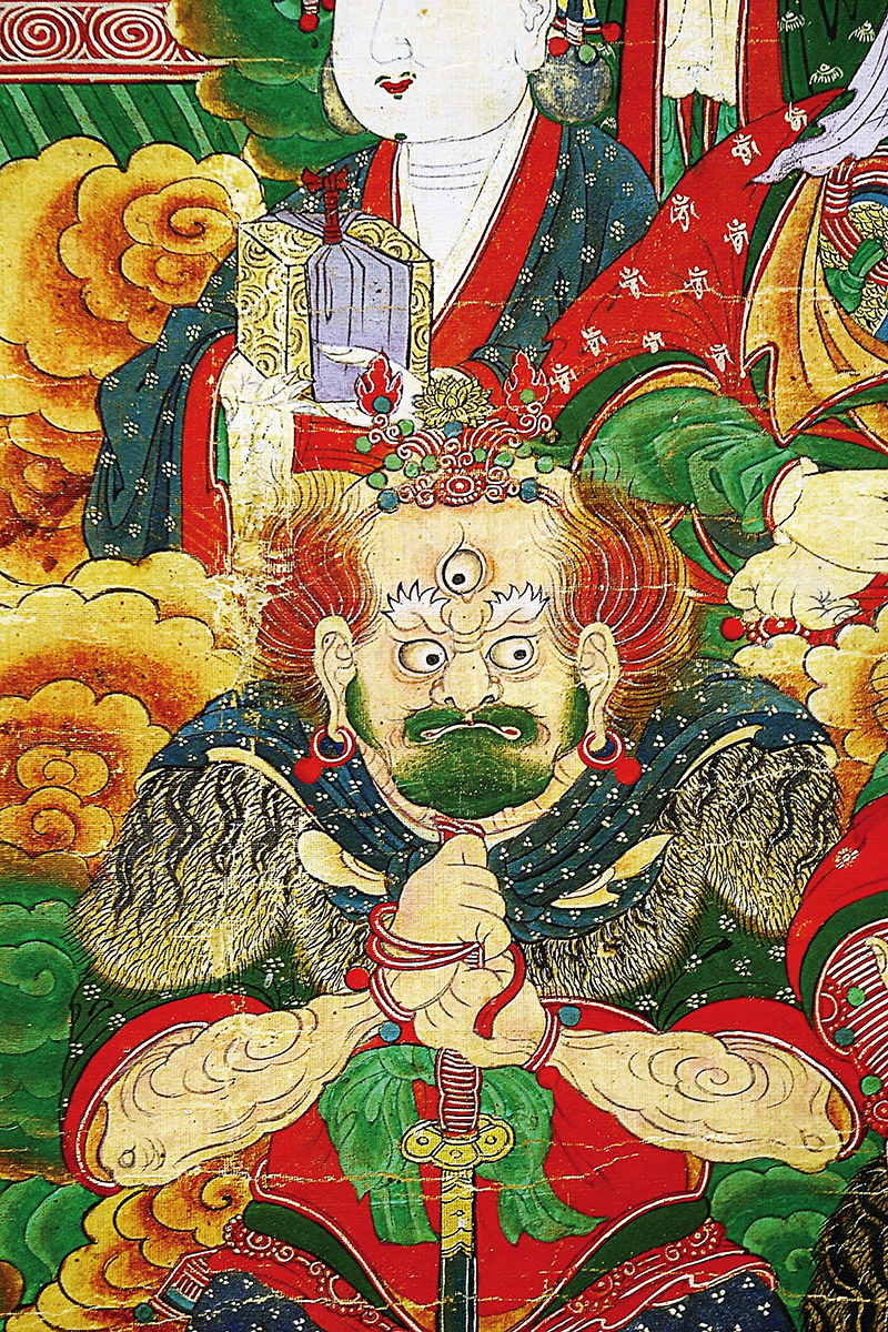다음으로 보살들의 옆에는 제석천과 범천, 그리고 사천왕이 자리하고 있다. <지장보살본원경>이나 <사천왕경(四天王經)> 등을 보면 이 천신들이 지장보살을 옹호하고 받드는 것으로 언급되어 있는데, 이에 근거한 것이다.