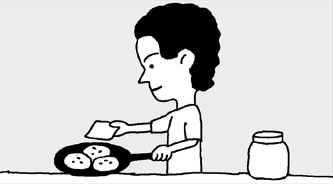 함박스테이크를 구울 때 반죽이 갈라지면 그 위에 치즈를 얹으면 된다.