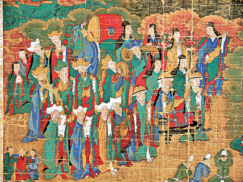 감로도(甘露圖)는 죽은 자의 영혼을 달래는 불화이다. 의지할 곳 없이 떠도는 무주고혼(無主孤魂)에게 ‘감로’와도 같은 법문과 의식을 베풀어 천도(薦度)하는데 사용되는 불화인 것이다. 그 배경에는 어머니를 향한 목련존자(目連尊者)의 효심이 담겨있으며, 윤회의 굴레를 벗어날 수 없는 가엾은 중생을 구원하겠다는 대승적 실천 의지가 반영되어 있기도 하다.