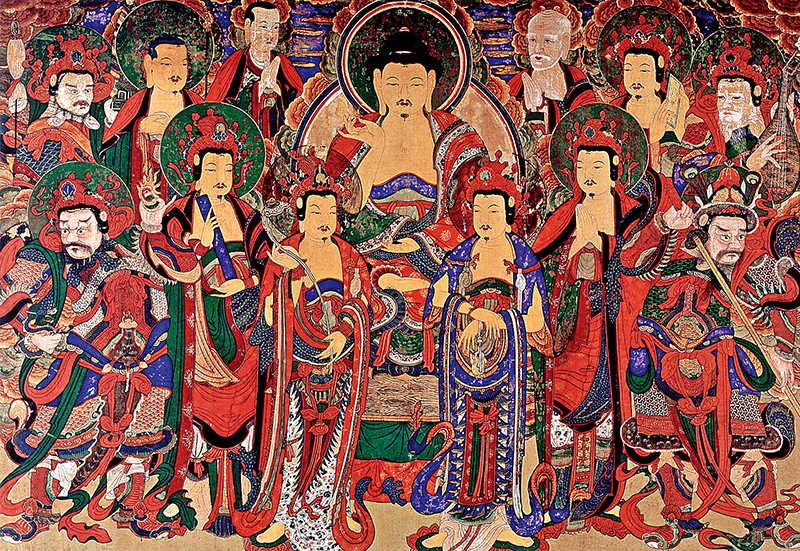 예를 들어 ‘지장시왕도’와 ‘현왕도’는 명부계 존상들의 성격에 맞게 눈매 하나만으로도 보는 이를 압도하며 ‘신중도’의 제존 역시 이목구비의 표현은 물론 옷 주름선 하나도 흐트러짐이 없이 명료하고 단정하다. 그리고 이러한 경향은 ‘아미타설법도’에서도 마찬가지로 확인된다.