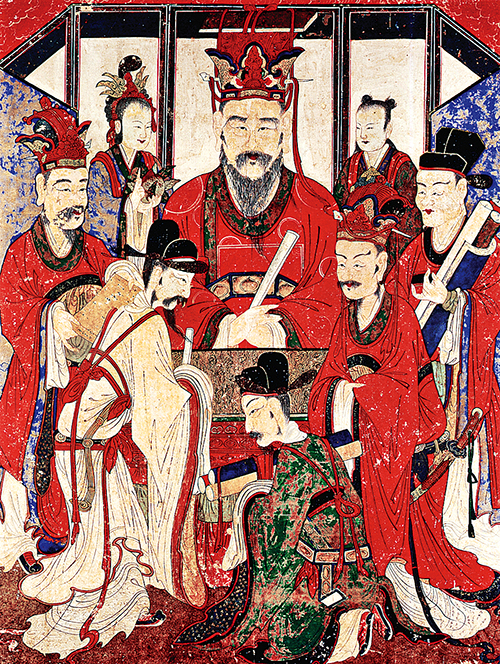 현왕은 고개만 좌측으로 돌려 대륜성왕의 보고를 경청하고 있는 모습이다. 좌우보처의 주변으로는 판관과 동자 동녀가 시립하고 있다. 현왕은 긴 수염을 늘어뜨린 채 근엄한 모습으로 앉아 정면을 응시하고 있다. 현왕뿐만 아니라 좌우보처와 판관들의 눈매도 매우 날렵하다. 현왕을 비롯한 존상들의 구성과 이름은 제반문, 현왕재의문, 또는 요집문(要集文) 등에 근거한다.