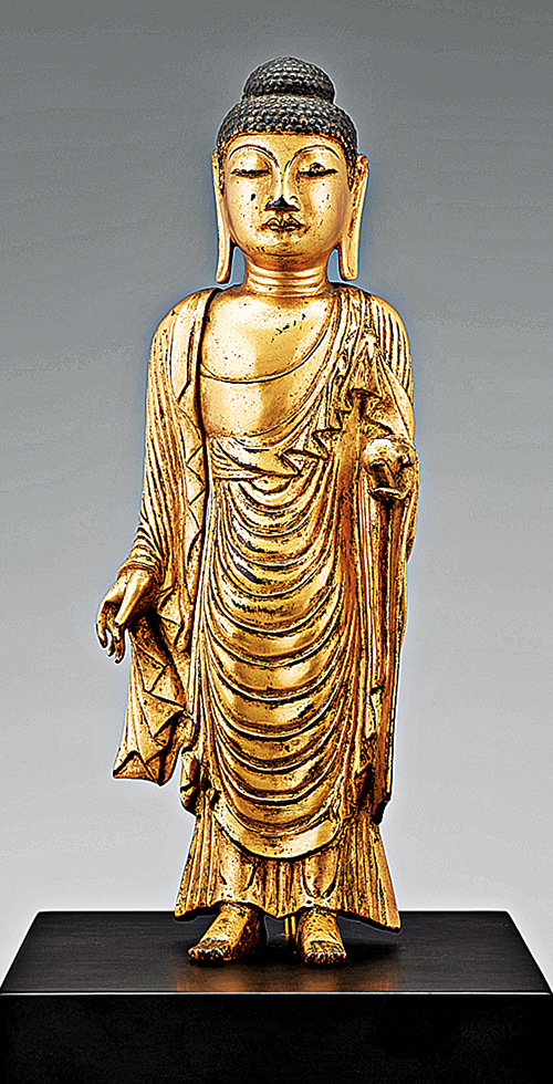 금동약사불입상, 통일신라시대 8세기 중엽, 36.0cm, 보스톤미술관.