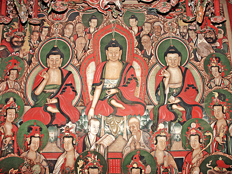 정조의 국운왕성과 아버지 극락왕생, 어머니 만수무강을 바라는 지극한 효심이 위대한 예술품으로 승화된 것이 바로 용주사 대웅보전의 삼세여래불화이다. 정조는 1790년 2월 북경에서 돌아온 김홍도를 감동관으로 발탁하여 궁중화원 이명기, 김득신과 더불어 민관, 상겸, 성윤 등 25명의 스님과 함께 살아계신 부처님을 그리는 일을 처음 시도했다. 이렇게 탄생된 불화가 용주사 삼세여래불화로 중앙에 석가모니불을, 동쪽에 약사여래를, 서쪽에 아미타불을 모셨다.