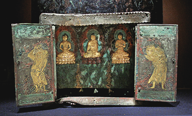 그 옆 수종사 팔각오층석탑 속에는 층층마다 금동부처님이 가득 모셔져 있었다. 1957년 해체과정에서 초층 탑신석에서 금동불감, 그 속에서는 석가모니불, 반가사유 미륵보살, 지장보살 등 금동삼존불이 발견됐다. 특히 석가모니불 대좌 바닥에는 ‘시주 명빈 김씨(施主 明嬪 金氏)’의 명문이 있고, 복장 안에는 성종의 후궁들인 숙용 홍씨, 숙용 정씨, 숙원 김씨가 1493년에 발원한 복장발원문이 나왔다.
