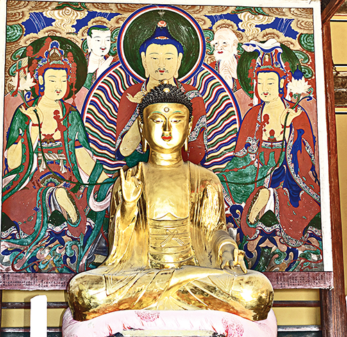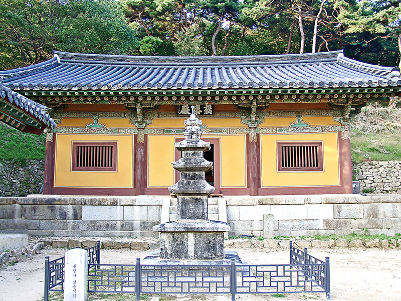 있는 듯 없는 듯 낡은 대문과 돌계단을 딛고 올라서면, 군더더기 없는 팔작지붕의 대웅전과 자연미가 넘치는 기단이 고풍스럽게 펼쳐진다. 장명등이나 불탑도 없어 시원스레 금당을 마주한다. 띠살 무늬 사분합문과 난간을 두른 툇마루도 고향의 정취를 느끼게 한다. 대웅전 분합문을 들쇠로 들어 올리면 대웅전의 공간이 툇마루, 앞마당, 덕휘루까지 넓어진다. 부처님과 중생이 하나로 뒤섞이는 영산회상이 펼쳐지면 무수한 불보살과 천신, 성문, 연각, 대중이 거룩한 덕의 광채에 이끌려 화엄강당, 무량해회(無量海會)에 운집하는 장관이 연출된다.