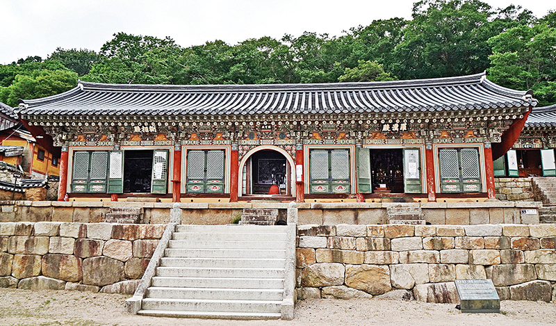 1658년에 중수한 대웅전은 맞배지붕에 다포 양식의 조선 중기 목조 건축물로 계단의 소맷돌에는 연꽃과 국화꽃이 아름답게 피어났다. 내부에는 화려한 불단과 정교하고 섬세한 보개가 조선시대 목조공예의 뛰어남을 보여주고 있다. 1661년에 조성된 수기삼존불인 제화갈라보살, 석가모니불, 미륵보살은 비례가 알맞고 균형 잡힌 몸매는 당당하고 풍만한 양감 속에 미소 띤 얼굴은 자비롭고 우아한 모습이다.
