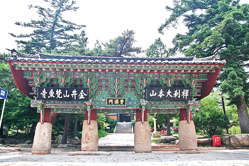 금정총림 범어사 조계문(曹溪門). 일주문 가운데 유일의 보물이다. 조선 숙종 44년(1718) 기존의 문을 고쳐 4개의 큰 돌기둥으로 장엄하여 교리적 의미를 담고 있으며, 〈인왕경〉에 “모든 부처님께서는 다 이 문(門)에 의지하여 성불할 수 있었다”고 전한다.