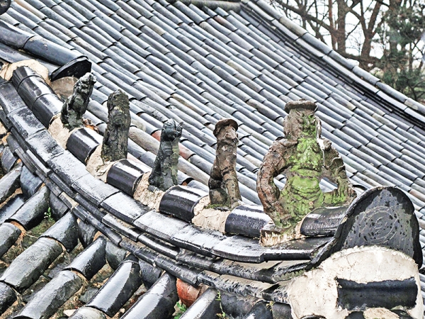 대웅보전 귀마루지붕 위에는 <서유기(西遊記)>에서 불경(佛經)을 구하러 천축(天竺)으로 가는 삼장법사(三藏法師) 현장(玄)스님의 일행이 올려져있어 눈길을 끈다. 갑옷을 입고 위엄 있게 구법의 길을 개척하는 늠름한 손행자(孫行者=손오공)부터 저팔계(八戒), 사화상(沙和尙=사오정), 마화상(馬和尙=필마온), 삼살보살(三煞菩薩=현장스님) 등이 있다. 이들을 ‘잡상(雜像)’이라 부르지만 잡상이란 용어는 당치도 않는 말이다. 죽음을 무릅쓰고 법을 구하는 이들을 ‘구법행자상(求法行者像)’이라 불러야 맞는 말이다.
