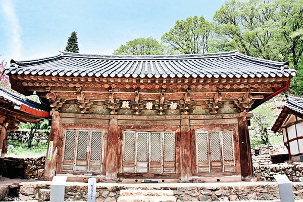조선 선조 38년(1605)에 세운 극락전은 우리나라에는 유일하게 남아있는 하앙식(下昻式) 공포 구조여서 국보적 가치를 유감없이 보여주고 있다. 하앙식 구조란 바깥에서 처마 무게를 받치는 부재를 하나 더 설치하여 지렛대의 원리로 처마를 훨씬 길게 내밀 수 있게 한 구조이다.