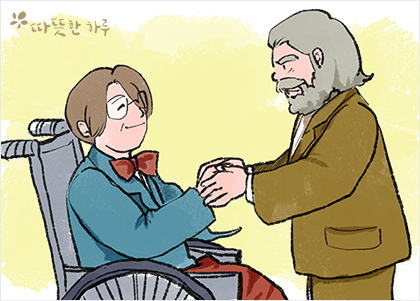 크게 다쳤던 그 병사가 휠체어를 타고