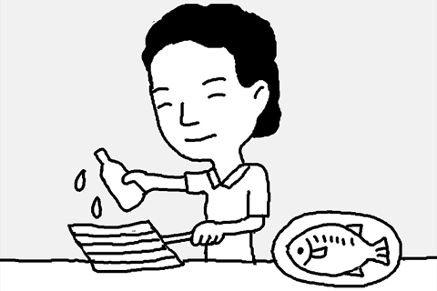 충분히 달군 석쇠에 식초를 살짝 발라주면 생선 껍질이 철사에 잘 눌어붙지 않는다.