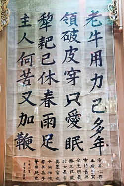 인목대비 글씨. 늙은 소의 고달픔과 그것을 바라보는 주인의 애처로운 마음을 자신의 처지에 비유한 것이라고도 한다.