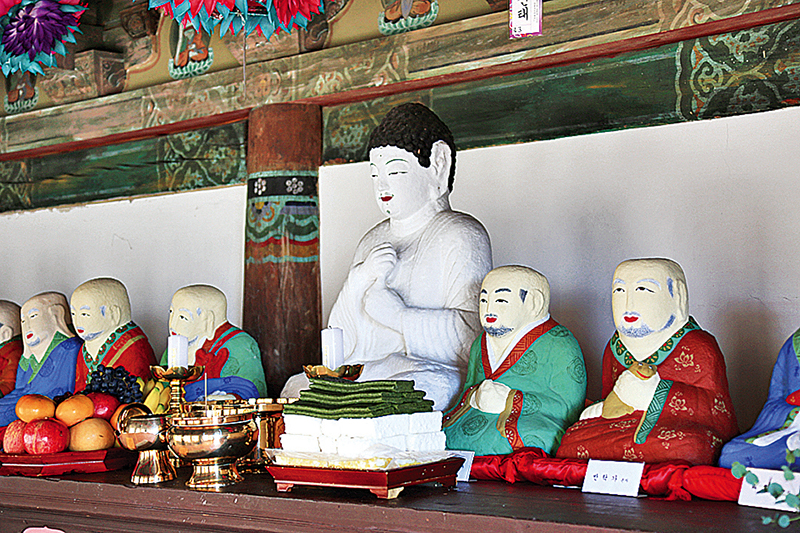 나한전 비로자나불과 아라한. 나한들의 모습이 다소곳해 보이지만 눈빛은 선객의 깨달음을 말해주는 듯 맑고 강렬하다.
