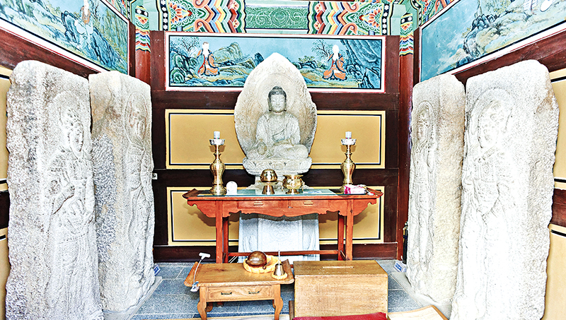 옛 절터 작갑사(鵲岬寺) 유래를 짐작케 하는 작갑전의 통일신라 석가모니불과 사천왕상.