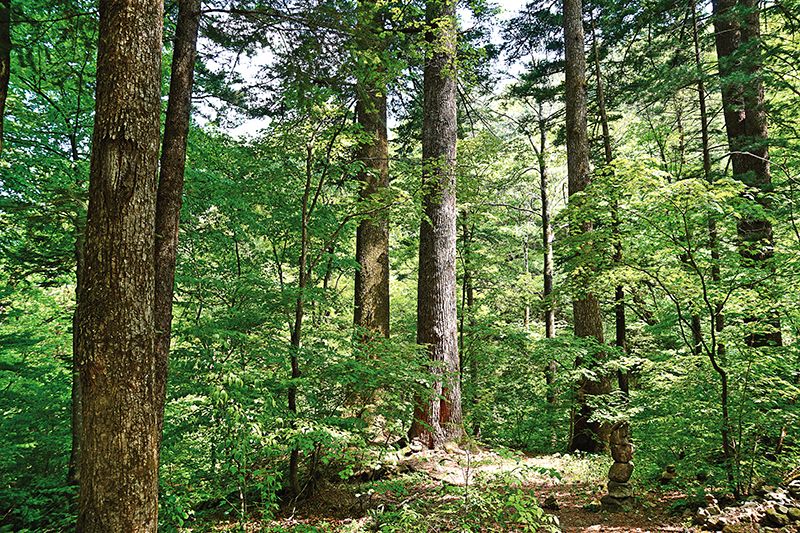 오대산 월정사 전나무숲길. 월정사를 빛낸 스님들의 주장자인 듯 당당한 나무들의 기상은 하늘을 찌르고도 남음이 있어 성스러움이 묻어난다.