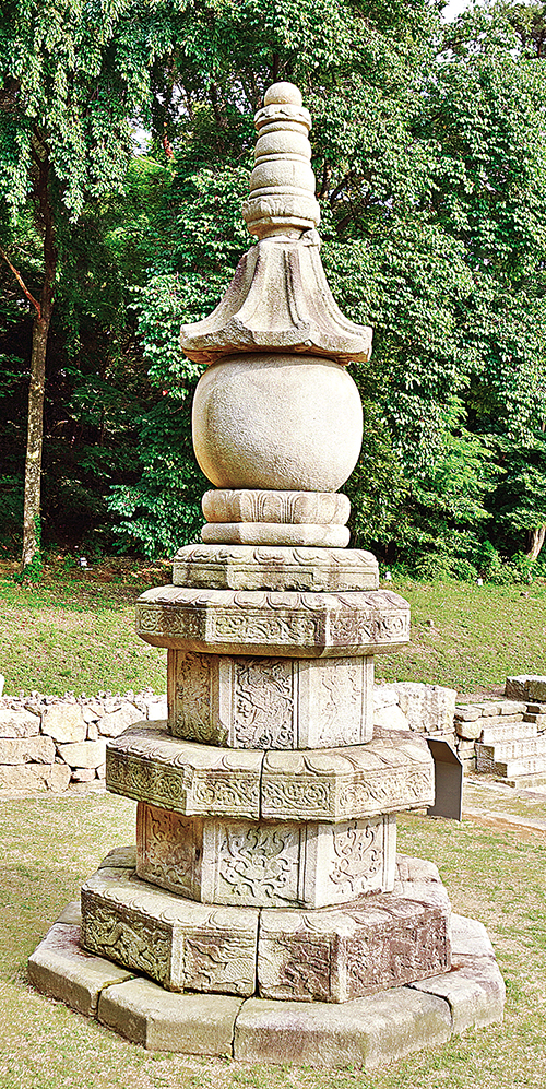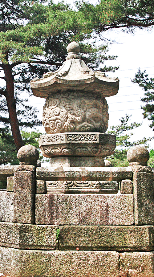 양주 회암사 동쪽 능선을 따라 오르면 위쪽에서부터 나옹, 지공, 무학스님의 부도가 남북 선상에 차례로 있다. 사진은 나옹스님 부도탑.