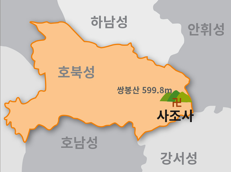 사조사가 있는 파액산(破額山)은 현재 중국의 강서(江西), 호북(湖北), 안휘(安徽) 등 3성(省)의 접경지역이다. 북쪽으로는 대별산(大別山)이 있으며, 남쪽으로는 장강(長江)이 흐른다. 북쪽이 높고 남쪽이 낮은 북고남저이며, 산상(山上)의 풍경은 수려하며 조용하고 그윽하다. 산 아래는 비옥한 논밭이 끝없이 펼쳐져 농산물이 풍부하여 풍요로운 삶을 영위하고 있다.