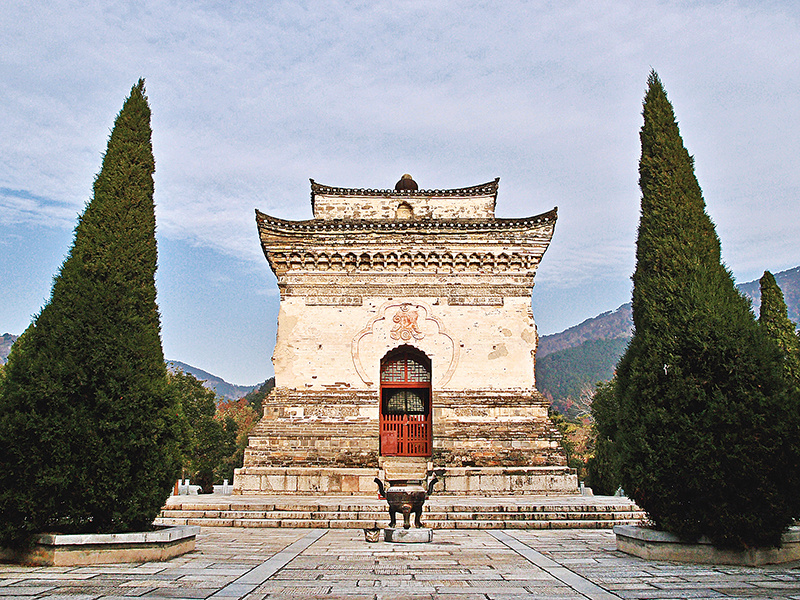 전법동 바로 앞 언덕 위에 유명한 비로탑(毘盧塔)이 있다. 오조홍인이 직접 스승 도신선사를 위해 세운 것으로 추정한다. 탑의 외형은 비로자나불이 머리 위에 쓴 보관(寶冠)과 비슷하다고 해서 비로탑이라 부르고 있다. 이 탑은 1300년 동안 원래의 모습을 보존하고 있는데 학자들은 중국 선종에서 세운 첫 번째 탑이며 이로부터 선사들의 입적 시 탑에 모시는 '탑장(塔葬)'이 시작된 것이라 고증하였다.