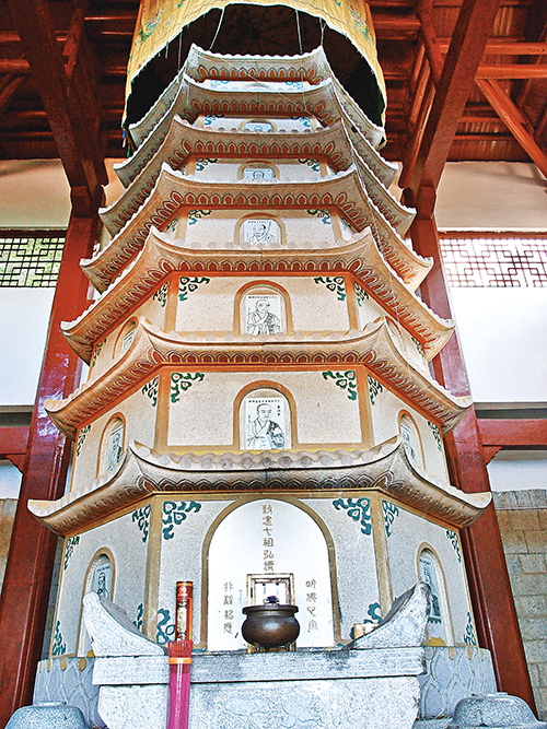 길을 따라 오르면 칠조(七祖)의 ‘귀진탑(歸眞塔)’에 도착한다. 이 탑은 당대 개원 연간에 지은 것이다. 그 옆에 가시나무가 있는데, 행사선사가 가시나무를 거꾸로 심은 것이다. 황휘는 ‘법음인천(法蔭人天)’이라는 커다란 네 자를 남겼다.