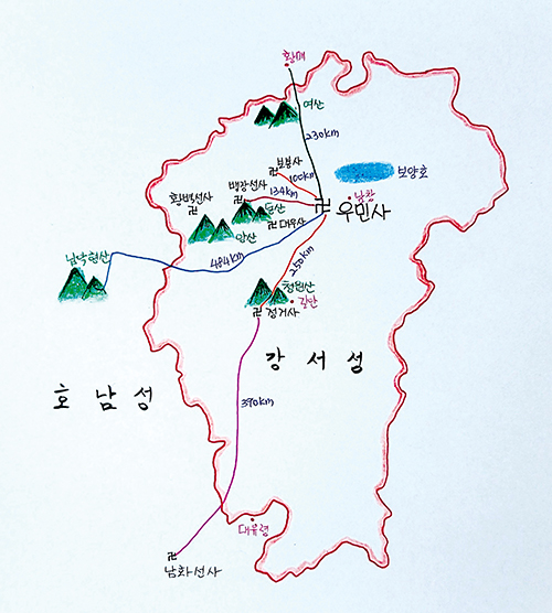 우민사는 강서성 남창시(南昌市) 중심 깨끗하고 맑은 호수인 남호(南湖)의 동쪽 작은 골목에 자리한 천년고찰이다. 마조도일(馬祖道一) 선사는 혜능 문하 남악회양(南嶽懷讓) 제자이다. <법보단경(法寶壇經)>에 따르면, 일찍이 혜능선사가 회양에게 “너의 제자 가운데 한 망아지가 나올 텐데, 천하의 사람을 밟아 죽일 것이니라”라고 예언을 하였다. ‘망아지’는 바로 마조도일 선사를 가리킨다. 마조가 일으킨 선(禪)을 후학들은 ‘홍주종(洪州宗)’이라 칭하는데, 남종문하에서 가장 광범위하게 전파된 선맥이다.