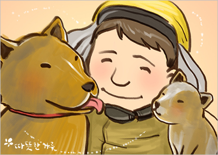 할머니께 강아지를 건네드릴 때 어디선가 큰 개가