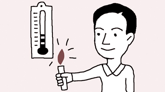 온도계안의 빠란 알코올이 토마토막 끊어졌을 땐 온도계 아래에 불을 쬐어주면 이어져요.