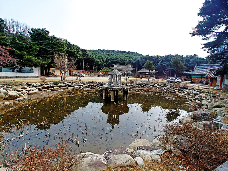 입구에 조성한 넓은 호수가 절 경치를 더 빛내준다. 언제부터인가 청둥오리 두 마리가 떠나지 않고 제 집 인 양 살고 있다. 절 정면에 대웅전이, 그 옆에 지장전이 있다. 오른쪽으로는 공양간 종무소 주지스님 숙소 등으로 쓰는 요사채다. 대웅전 옆 와불(臥佛)이 눈길을 끈다. 와불 주변만 밤새 불을 밝히는 것이 이채롭다.