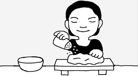밀가루를 반죽할때 소금을 조금 넣으면 한결 쫄깃해져요.
