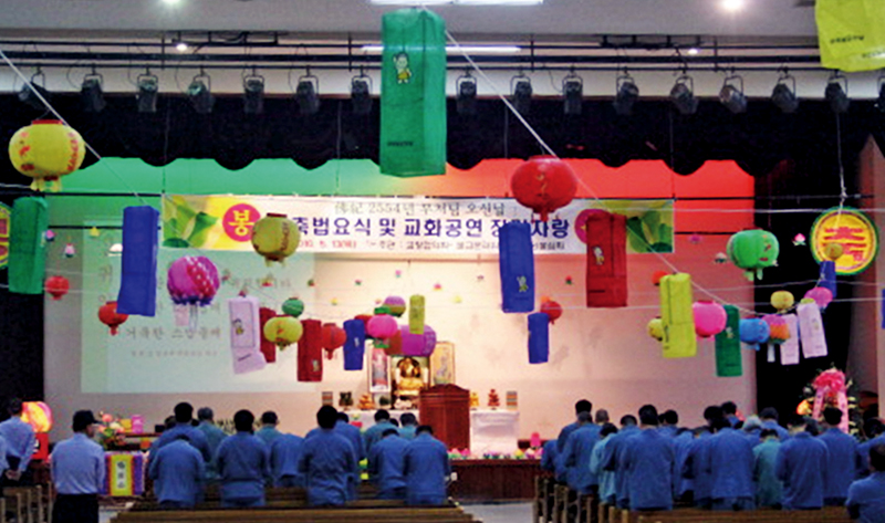 삼막사 후원으로 여주교도소에서 매년 봉행하는 부처님오신날 기념법회 모습.