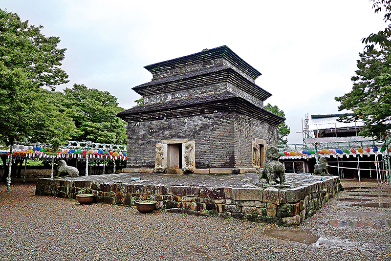 신라 634년에 조성된 분황사 모전석탑, 높이 9.3m.